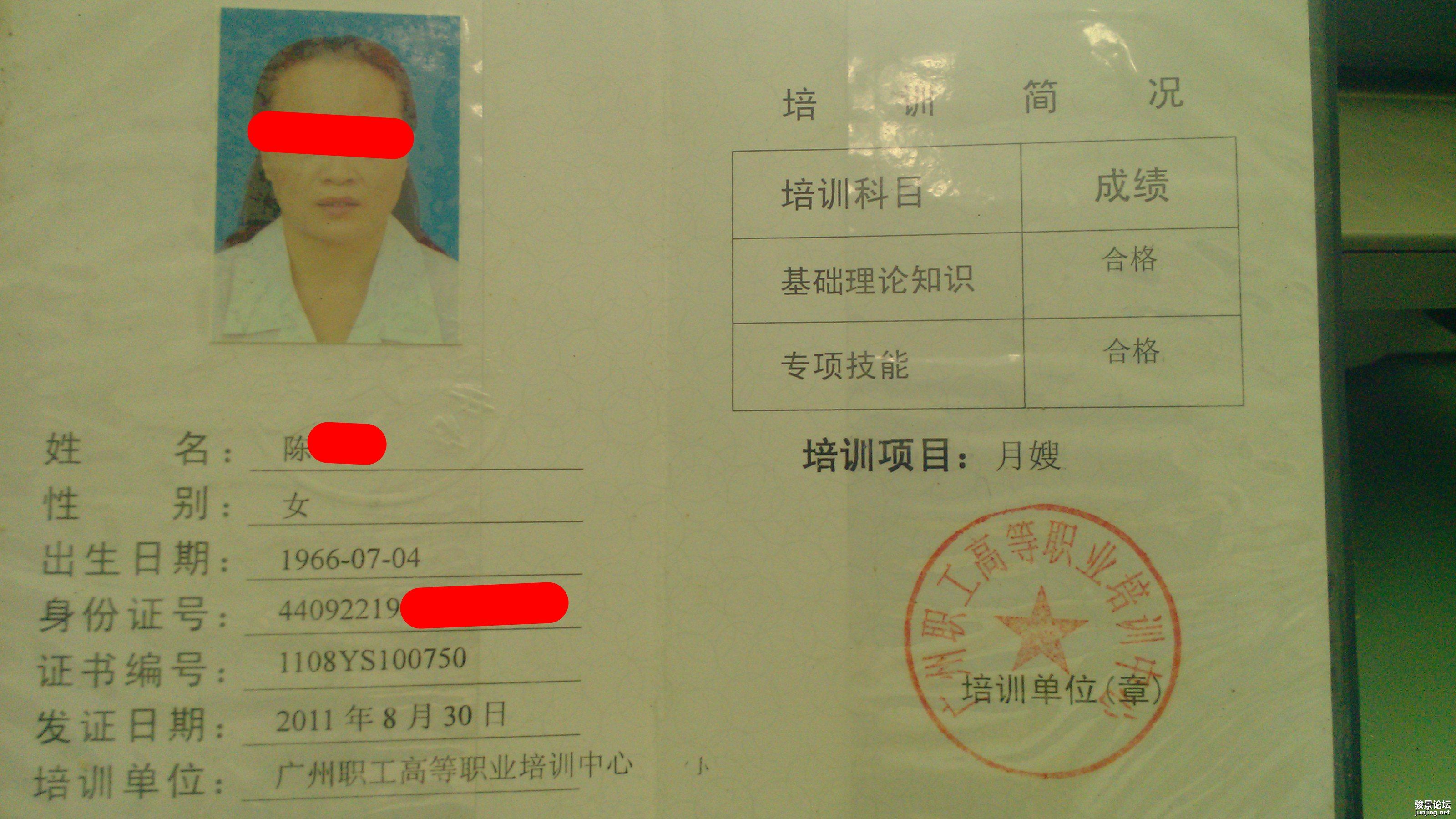 大概资料: 户籍:东莞塘厦 年龄:46 学历:中专(财务) 技能:有专业月嫂培训。会煮一手好菜。 有意者自己联系她:QQ2531438284 就说是老汽配的朋友